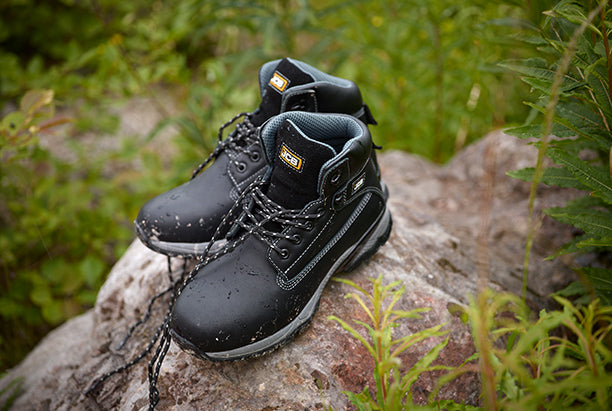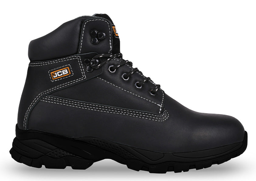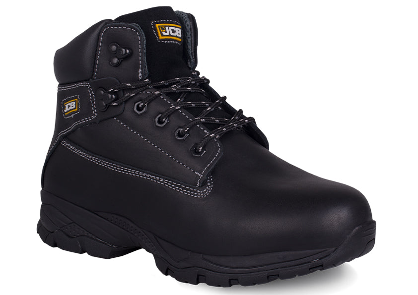 JCB Holton Black. Premium full grain leather. Ultra-light EVA sole for maximum cushioning & comfort. Soft toe. Quick release & hexagonal eyelets. Comfort padded ankle collar. Rubber outsole for traction & longlasting wear. Bellowed tongue to seal out debris. Slip resistant. Ultra comfort performance inner sole. Available in sizes 5-13.